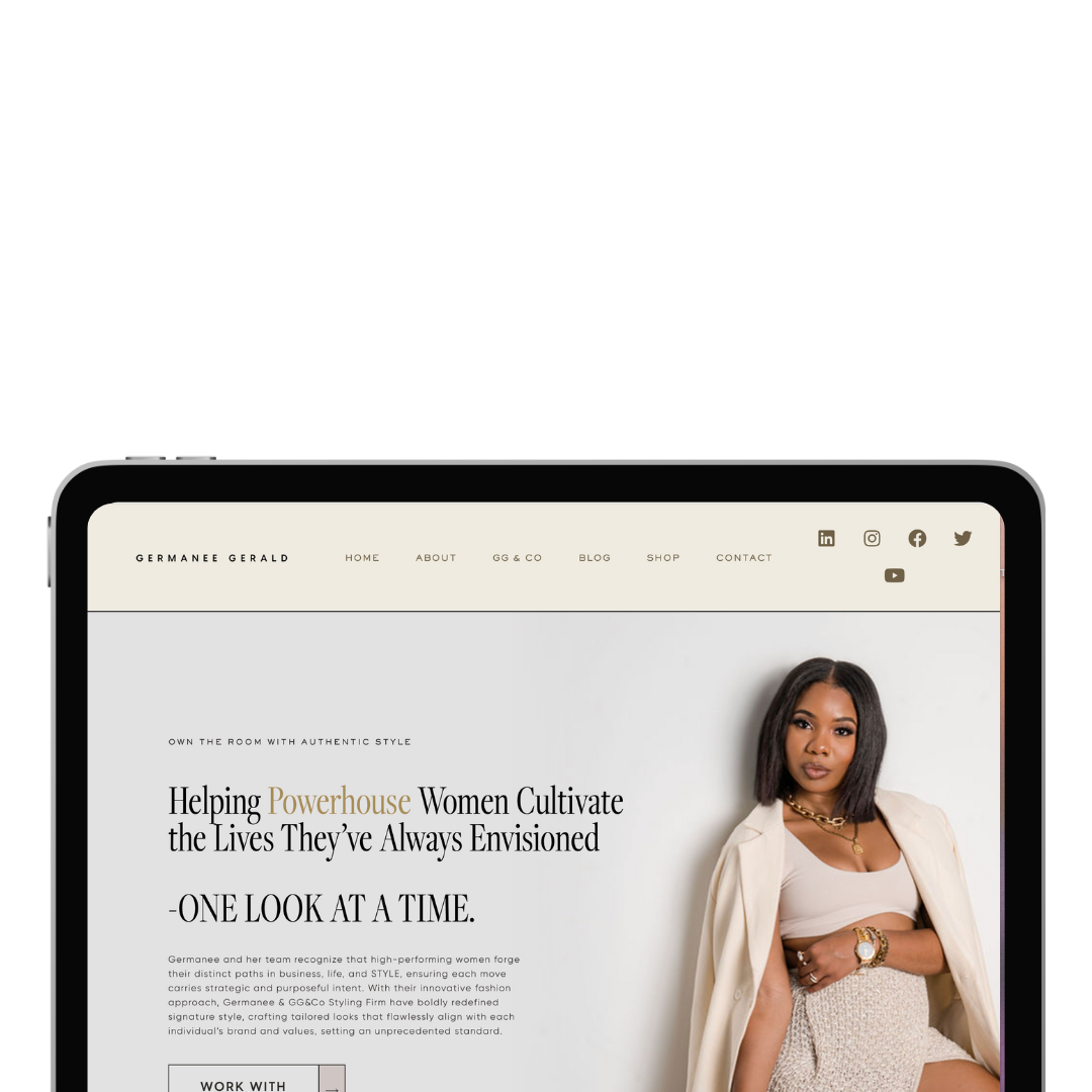 Germanee needed a cohesive brand shoot to anchor her new website and introduce the full GG & Co. team. We captured polished, modern visuals featuring Germanee, her styling assistants, and her executive assistant, highlighting how they work together to support high-performing women through personalized wardrobe strategy.
